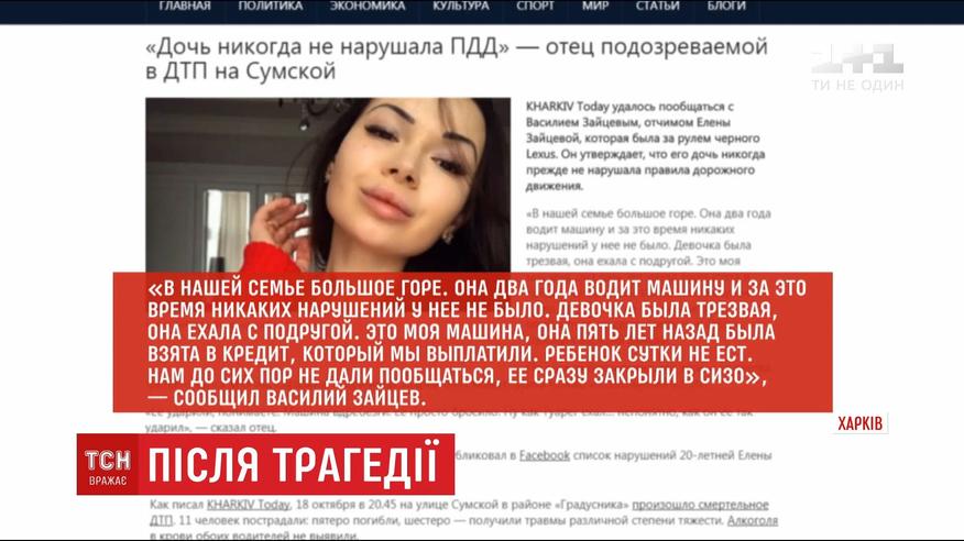 Подозрение девушке на "Лексусе" объявили накануне, а вот меру пресечения будут выбирать в пятницу. Эту ночь, как, собственно, и предыдущую, девушка со связями и влиятельными родственниками проведет в СИЗО. Елена - сводная сестра люстрированого крымского прокурора, который находится в розыске, и приемная дочь влиятельного бизнесмена. Именно ему, по данным полиции, принадлежит авто, повлекшее ДТП.