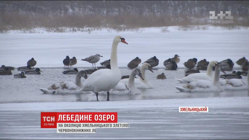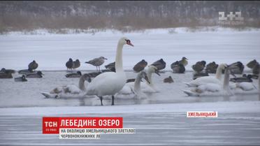 До озера на окраине Хмельницкого слетелись почти две сотни лебедей