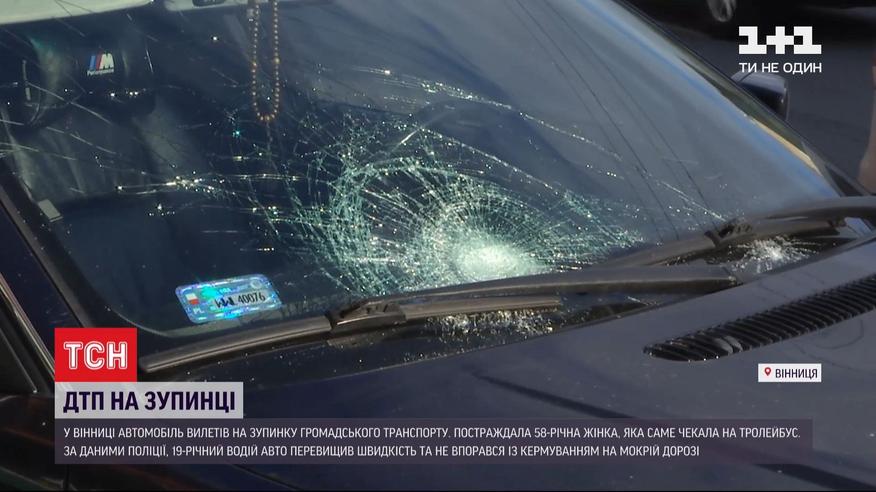В Виннице "БМВ" врезалась в остановку общественного транспорта. Пострадала 58-летняя женщина, которая как раз ждала свой троллейбус. Автомобиль буквально снес ее с места. Травмированную госпитализировали. За рулем машины был 19-летний парень. Трезв, говорят в полиции. На оживленном перекрестке он превысил скорость и не справился с управлением на скользкой после дождя дороге. Водитель и двое его пассажиров - женщина и маленький мальчик - отделались испугом.