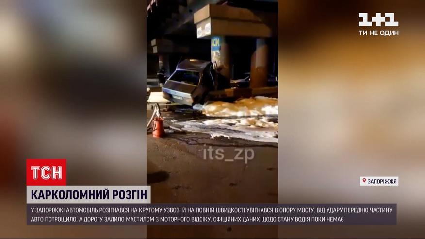 ДТП в Запорожье: "Лада" на спуске и на полной скорости вогнался в опору моста