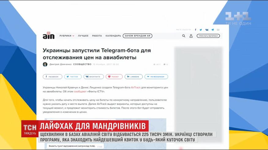 Программа Airtrack мониторит 98% всех авиакомпаний мира и по мессенджеру "Телеграмм" будет присылать самые бюджетные варианты. Говорит бот пока только на трех языках - украинском, русском и английском.