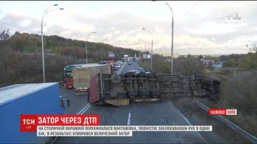 Движение по кольцевой дороге столицы затруднено из-за перевернутой фуры
