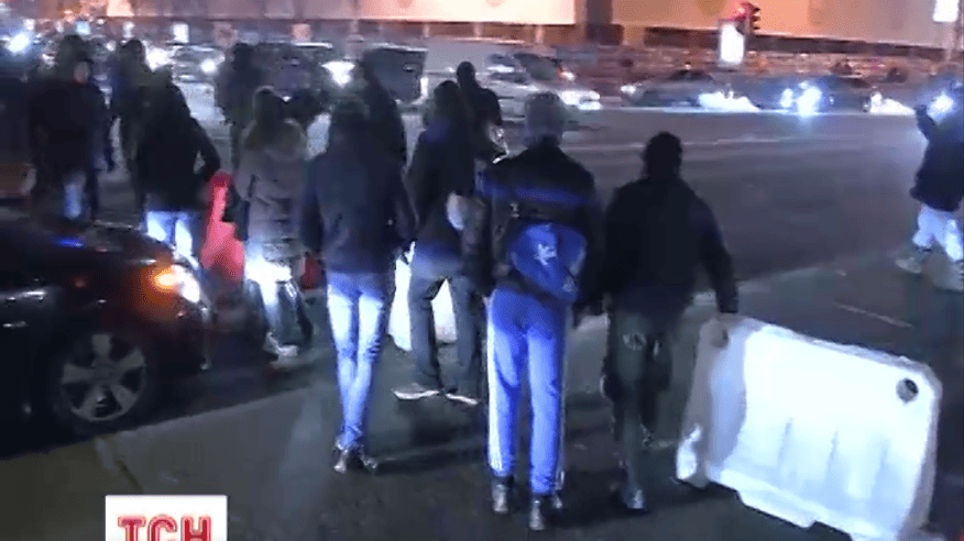 Движение по Крещатику на несколько часов перекрыли парни с дубинками и в балаклавах