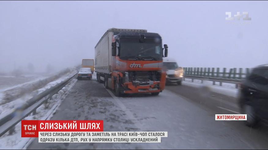 Движение в направлении столицы на трассе Киев-Чоп затруднено из-за массовых ДТП