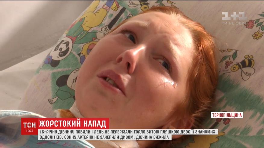 На Тернопольщине 16-летнюю девочку избили палкой и едва не перерезали горло битой бутылкой двое ее знакомых сверстников. Сонную артерию не задели чудом, иначе потерпевшая не выжила бы. Оба обидчиков - несовершеннолетние, проблем с законом ранее не имели. Откуда взялась агрессия, объяснить не могут.