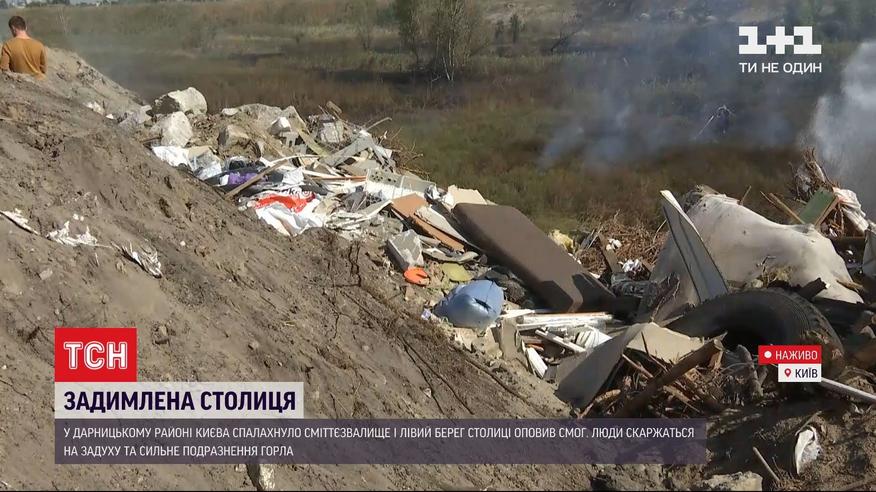 Пожар на свалке и вонь на левом берегу столицы. Пожарные работают уже более суток. Открытый огонь потушили, но мусор все еще тлеет, и пожарные не принимаются сказать, когда справятся с ситуацией окончательно.