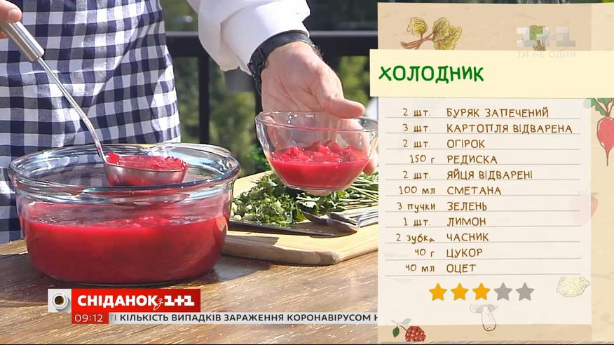 Егор Гордеев готовит холодник на летней террасе Сніданку з 1+1