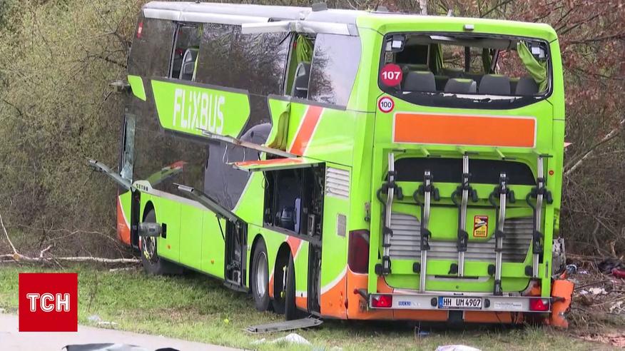 Масштабная авария в Германии. Автобус, перевозивший учеников профессионально-технического училища, съехал с трассы и перевернулся. На место прибыли пожарные и спасательный вертолет. Два десятка пассажиров получили легкие травмы, еще одного госпитализировали. Причины крушения неизвестны. Это уже вторая подобная авария на немецких дорогах за три дня. В среду автобус, который перевозил 54 пассажира, по неизвестным причинам съехал с дороги, влетел в деревья и перевернулся. Пять человек погибли, 28 - ранены, среди них - две украинки. Выяснить причины следователи надеются через несколько недель - тогда должны быть готовы первые результаты анализов аварии. По словам прокурора, 62-летнего водителя могут обвинить в непредумышленном убийстве. Детали - в ТСН.