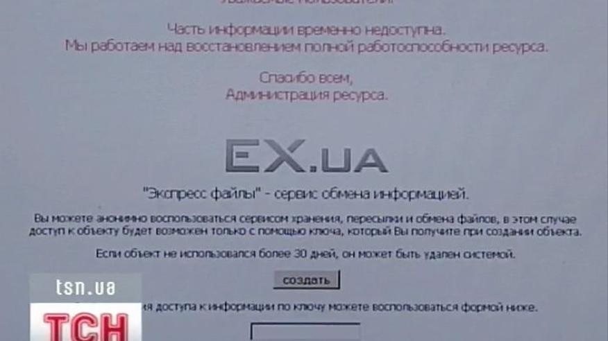 Страница сайта уже загружается, но скачать оттуда видео или аудио невозможно. Файлы недоступны. На главной странице администрация обращается к пользователям с обещанием вскоре работу сайта восстановить полностью. Между тем в милиции отрицают, что ex.ua вернулся из-за атаки на властные ресурсы. А хакеров обещают наказать.