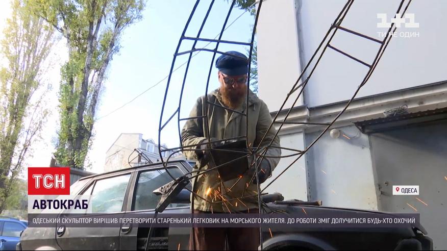 Превратить старенькую легковушку на морского жителя. В Одессе местный скульптор устроил необычный перфоманс: на глазах у прохожих начал распиливать 38-летний "фиат" и с его частей сваривать скульптуру трехметрового краба. А приобщиться к работе мог любой желающий.