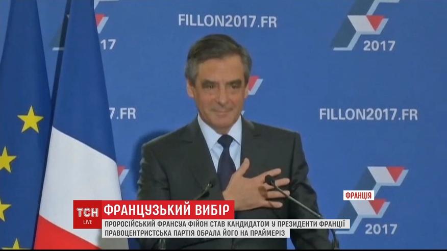 Известный своей пророссийской позицией бывший премьер-министр Франции Франсуа Фийон стал кандидатом в президенты страны от правоцентристов. Французы избрали его по итогам двух туров "праймериз", результаты которых стали сюрпризом для большинства, ведь Фийону, среди прочих, удалось победить фаворита гонки - бывшего президента Николя Саркози.