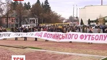 Более трех сотен человек, сами футболисты и многочисленные фанаты, выразили недовольство действующим председателем местной федерации футбола Василием Столяром.