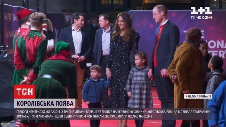 Королевский дебют. Герцоги Кембриджские впервые вышли в свет всей семьей. Вместе с тремя своими детьми - принцем Джорджем, принцессой Шарлоттой и принцем Луи. Они посетили театральную премьеру, которую организовали, чтобы отметить усилия тех, кто больше всех работал во времена пандемии. По красной дорожке монаршее семейство шло, держась за руки. Само представление монаршее семейство смотрело со специальной королевской ложи.