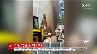 Гигантский фонтан: в Одессе во время земельных работ строители повредили водопровод