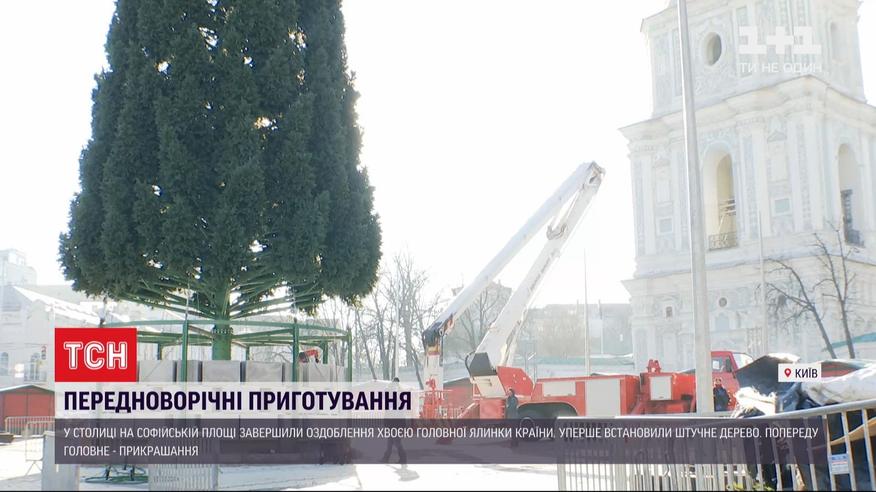Предновогодние приготовления. В столице, на Софийской площади, завершили собирать главную елку страны. Впервые она у нас искусственная. Впереди - ее отделки и украшения. Какие впечатления и чем организаторы обещают удивить киевлян и гостей столицы на этот раз - смотрите далее.