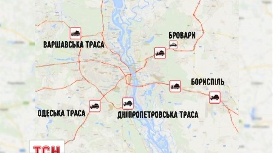 ГАИ стягивает технику с песком, чтобы в любой момент полностью перекрыть дороги. Перегорожены трассы, которые ведут из Днепропетровска, Одессы, Броваров, Борисполя и Варшавская трасса.