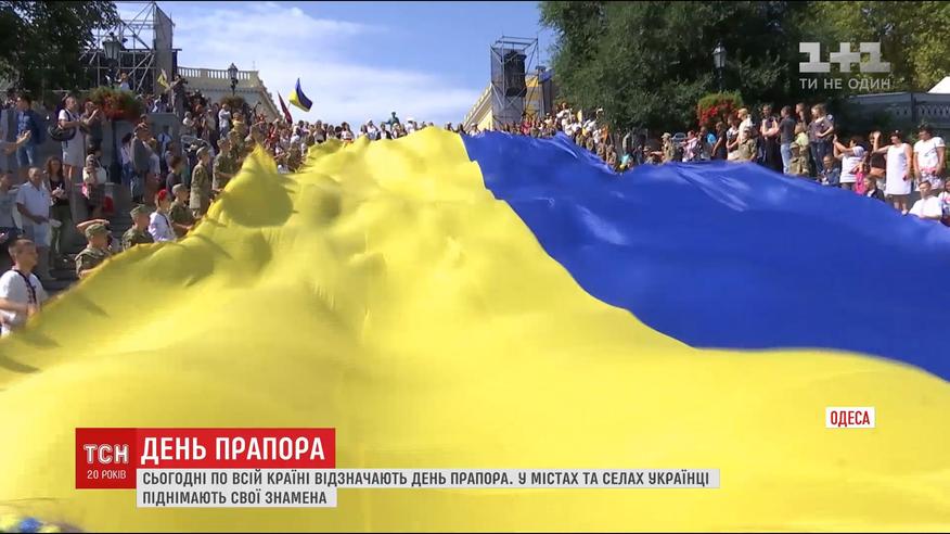 Это то же полотнище, которое 24 августа 1991 внесли в зал Верховной Рады Украины депутаты первого созыва. Вместо деревянной тумбы с сегодняшнего дня оно будет храниться в стеклянном кубе у главной лестницы парламента. Ко Дню Флага по городам и селам украинцы поднимают свои знамена.