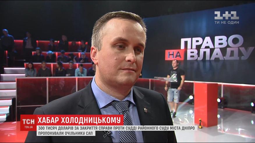 Всего Холодницкому предлагали 300 тысяч долларов, в Киев привезли 50 тысяч как первую часть суммы. Задержали взяточников просто в помещении антикоррупционной прокуратуры работники ГПУ и СБУ.