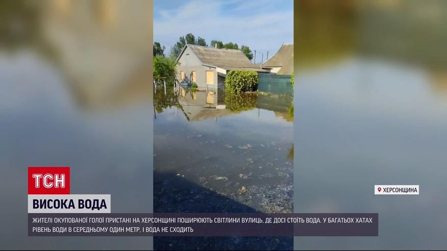 На оккупированной Херсонщине остаются населенные пункты, где после российского теракта на ГЭС до сих пор не сходит высокая вода. В зоне бедствия оккупирована Голая Пристань. Жители города распространяют фотографии и видео из подтопленных районов. Преимущественно, это низины, где вода задержалась и не сходит. Единственная надежда, что она испарится на солнце. А пока в воде стоят частные дома и магазины. Ее уровень - метр.