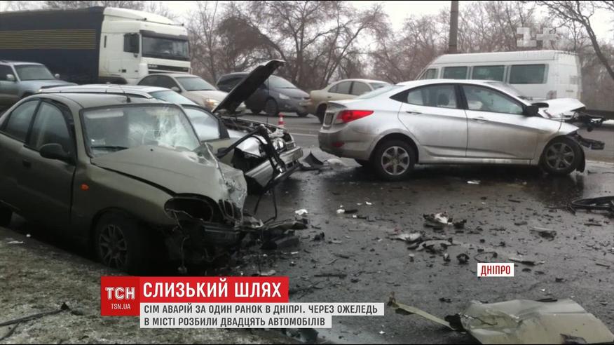 Гололед парализовал дорожное движение в Днепре: разбиты почти 20 автомобилей
