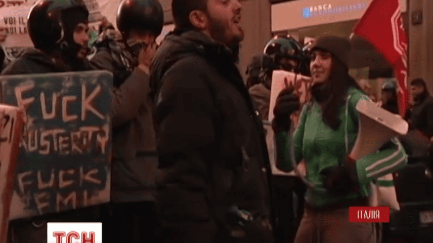 На подступах к легендарному театру Ла Скала полиция пыталась удержать около трех сотен демонстрантов. Участники акции протеста забросали правоохранителей яйцами и петардами.