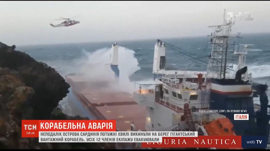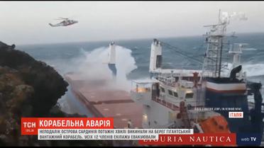Грузовой корабль с людьми на борту выбросило морскими волнами на скалы близ Сардинии