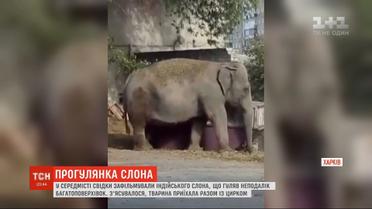 Харьковчане засняли слона, который гулял возле детского сада
