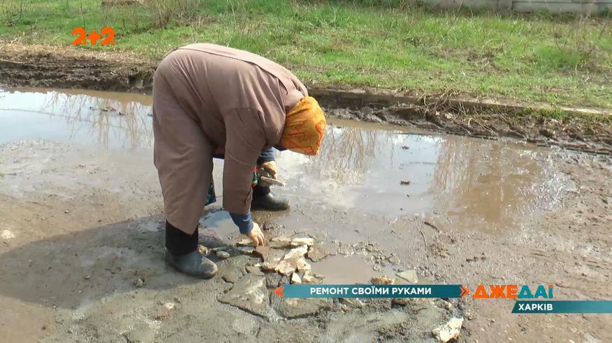 Харьковская пенсионерка устроила ремонт дорог своими руками