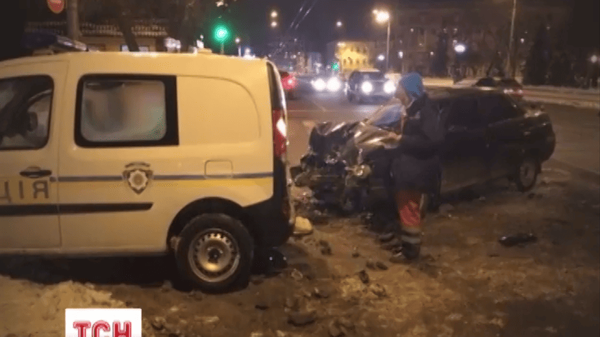 Правоохранители наехали на трамвайную колею, и их выбросило на встречную полосу. Беременная женщина, которая была за рулем ВАЗа не успела отреагировать, и врезалась в бок милиционеров.