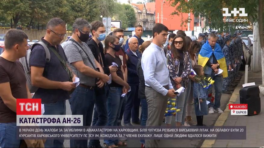 ТСН весь день работает у вуза, где учились погибшие курсанты и работали члены экипажа - это Харьковский авиационный университет. Много людей приходят отдать дань погибшим - в прямом включении.