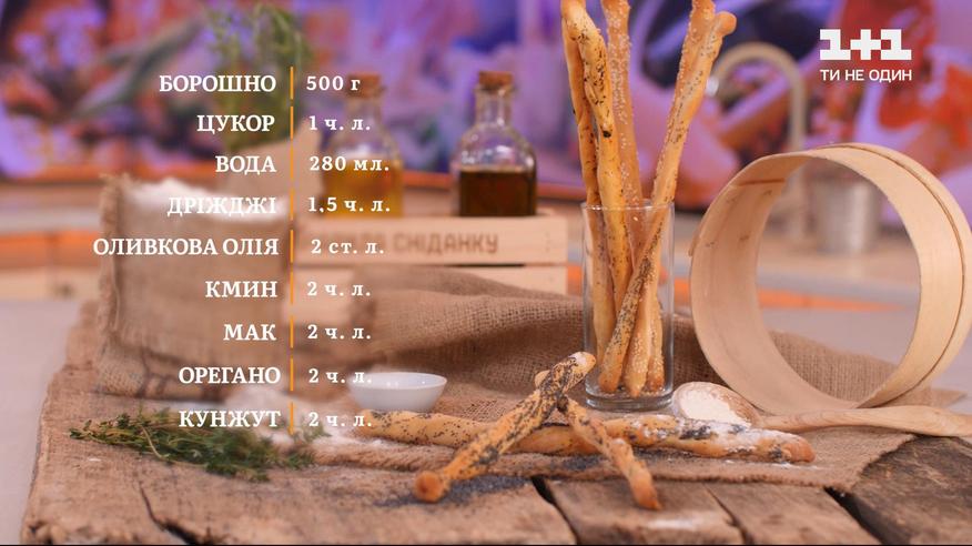 Далее наша кулинарная страница. Сегодня Руслан Сеничкин предлагает приготовить хлебные палочки или гриссини. Это вкусно и к тому же с ними каждое блюдо будет вкуснее. Смотрите и записывайте
