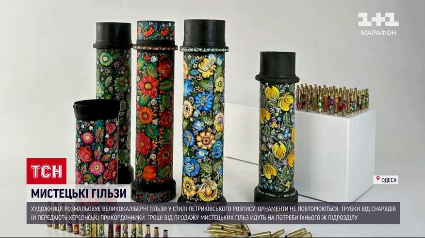 Художественные гильзы. Чтобы поддержать военных, в Одессе продают расписные крупнокалиберные гильзы. Металлические трубки от снарядов и шаров из Херсона разрисовывает художница Анна Вербич. Орнаменты в стиле Петриковской росписи не повторяются, каждая гильза уникальна. Гильзы ему передают херсонские пограничники. Деньги от продажи уходят на нужды их подразделения. Детали – в ТСН.