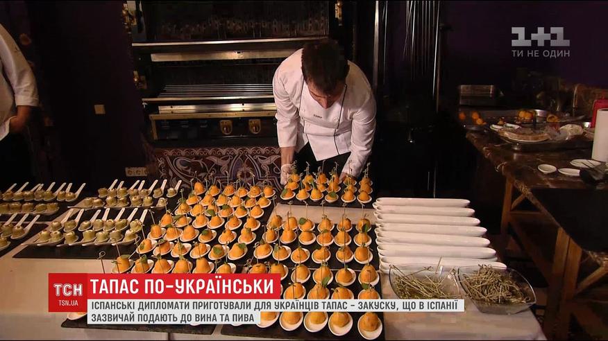 Кулинарный мастер-класс приурочили к Международному дню тапас, который впервые отпраздновали и в Украине. Тапас в Испании называют любую закуску, которую подают к пиву или вину в кафе и барах. Специально для празднования Всемирного дня тапас в Украине приехали два испанских повара, чтобы научить украинцев готовить традиционное испанское блюдо.