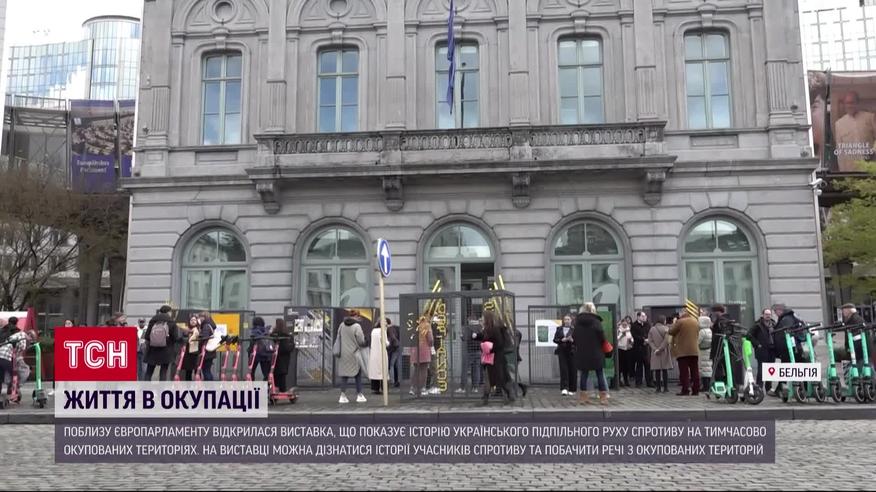 Реалии жизни в оккупации. О них сейчас рассказывают в самом сердце Евросоюза. Прямо возле Европарламента открылась выставка, пересказывающая историю украинского подпольного движения сопротивления на временно оккупированных территориях. Брюссельцы могут видеть реальные артефакты с оккупированных территорий и услышать истории активистов подпольного движения Желтая лента, рассказанные на художественный лад. К движению, созданному после полномасштабного вторжения, привлечены более 8 000 активистов. А оказывают они информационное сопротивление оккупационному режиму на временно не контролируемых территориях Украины. Сейчас это более ста тысяч квадратных километров.