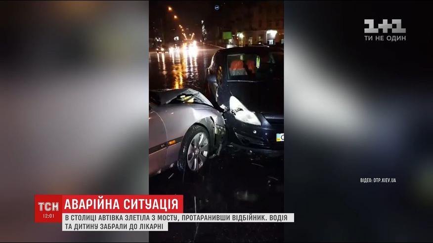 В Киеве на большой скорости автомобиль слетел с эстакады, пострадали водитель и ребенок. Вследствие столкновения легковушек на проспекте Победы, также пострадал ребенок. На том же проспекте беременную женщину госпитализировали из-за аварии 5 автомобилей. Неподалеку Шулявского путепровода столкнулись две машины, а водители сзади не успели затормозить. В другом ДТП водитель такси не справился с управлением и врезался в бетонную ограду на окраине Киева.