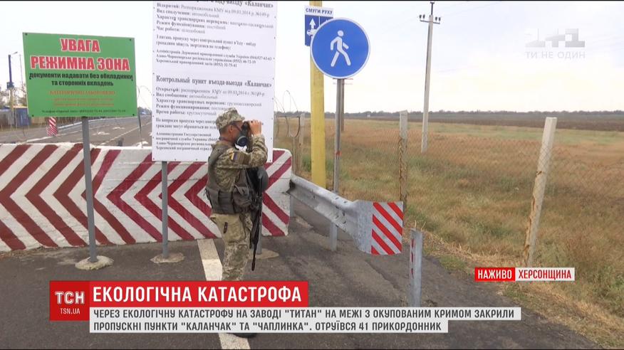 41 украинский пограничник пострадал из-за химического отравления на границе с оккупированным Крымом. 5 - уже госпитализированы. Два контрольно-пропускных пункта "Каланчак" и "Чаплинка" приостановили свою работу, чтобы уберечь здоровье пограничников.