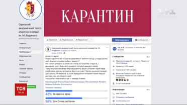 Театр в интернете. Из-за карантина Одесский театр музыкальной комедии решил показывать спектакли в соцсетях. Поскольку живые спектакли из-за угрозы коронавируса пришлось перенести минимум до апреля, зрителям предложили альтернативу. В интернете будут транслировать так называемый золотой фонд.Больше о коронавирусе в Украине