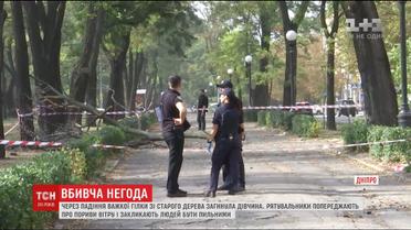 Из-за непогоды в Днепре на студентку упала огромная ветка из старого дерева