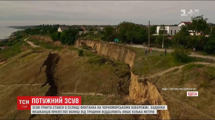 Из-за оползня под Одессой обвалился участок дороги и электростолбы