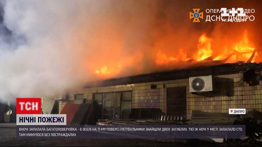 Пожар в многоэтажке и на СТО почти одновременно, и все в Днепре. Есть погибшие. Дым жители 16-этажки почувствовали в половине четвертого утра. Как только спасатели прибыли на место, сразу начали выводить людей с задымленных этажей. Оказалось, вспыхнуло в квартире на одиннадцатом этаже. Через час огонь потушили, но внутри нашли двоих погибших. Еще один мощный пожар вспыхнул ночью на станции техобслуживания. Огонь охватил крышу и помещение одноэтажного сооружения. В общей сложности пылало 250 квадратных метров.