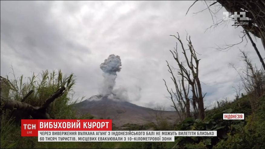 Авиакомпании отменили почти пять сотен рейсов. На острове проснулся вулкан "Агунг", и огненная гора выбрасывает в воздух столб пепла. Он поднимается уже на несколько километров, и местные власти объявили самый высокий уровень опасности.