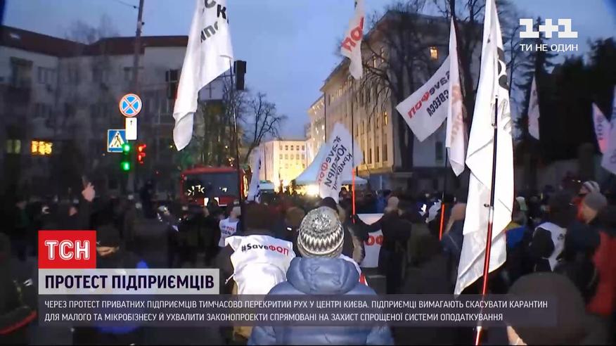 В Киеве снова протестуют ФЛП. Они собрались сегодня после обеда на Майдане Независимости. Поэтому в центре столицы ограничили движение транспорта. Оттуда более тысячи протестующих двинулись к правительственному кварталу. И пришли к Офису Президента. Подробности - далее.