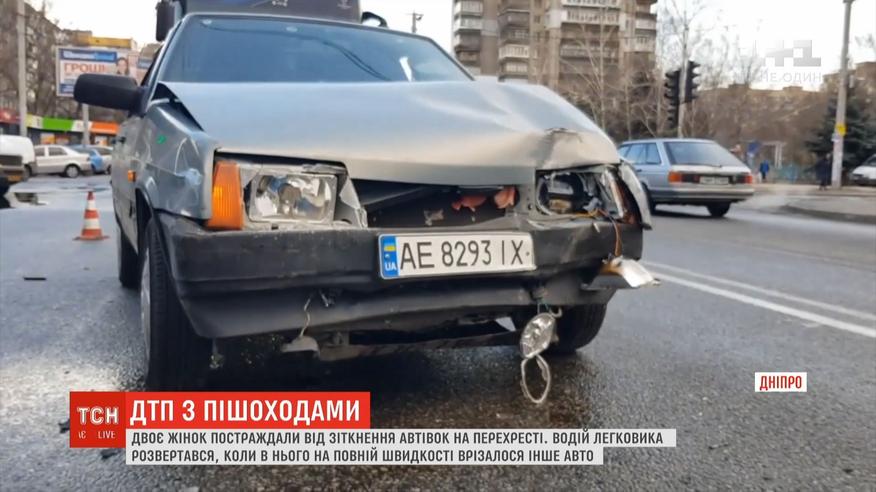 Из-за столкновения двух автомобилей пострадали прохожие в Днепре