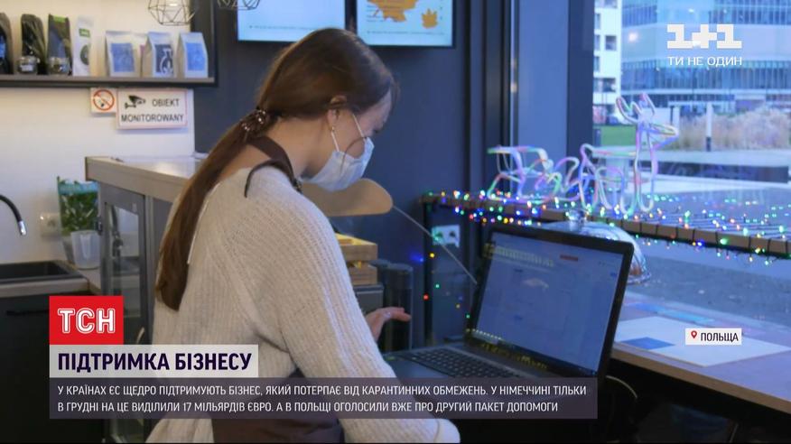 Налоговую скидку в 600 евро в год планируют в Германии для тех, кто работает из дома из-за карантинных ограничений. Кроме того, только в декабре в поддержку бизнеса в Германии выделят 17 миллиардов евро. Во Франции предприятиям предлагают 10 тысяч евро или компенсацию от выручки. Польша на днях объявила о уже втором пакете помощи малому и среднему бизнесу, который пострадал во время карантина.