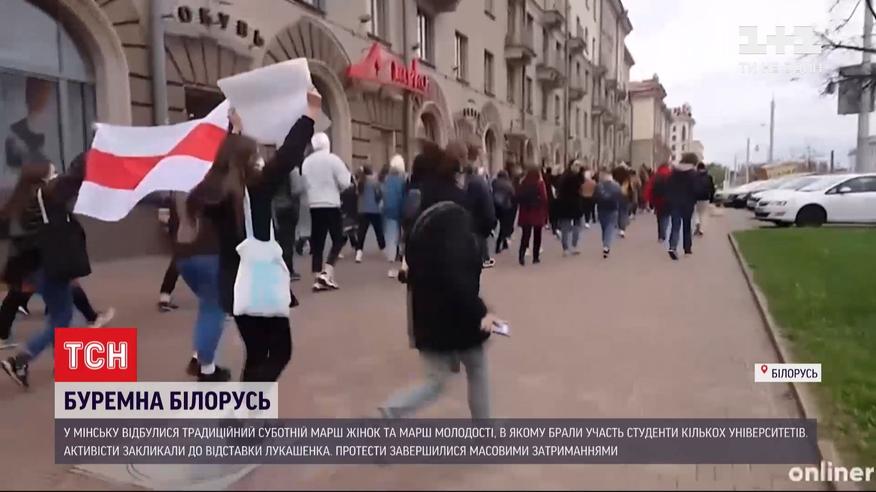 Марш женщин и студентов состоялся сегодня в Минске. И уже есть данные о как минимум 30 задержаниях. Среди арестованных есть и журналисты. Две акции продолжались в белорусской столице параллельно. Сначала тысячи женщин собрались на традиционный субботний марш в центре города. Колонной прошлись по улицам, с цветами в руках призвали к освобождению политзаключенных и отставке Александра Лукашенко. Между тем студенты нескольких белорусских вузов организовали отдельный протест неподалеку Минского государственного лингвистического университета. Там был жесточайший разгон и больше задержаний. В автозаки силовики паковали людей без разбора.