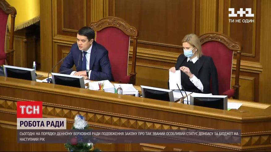 Продление закона о так называемом особом статусе Донбасса и бюджет на следующий год - эти вопросы первые сегодня на повестке дня Верховной Рады. Как обстоят дела - в прямом включении из парламента.