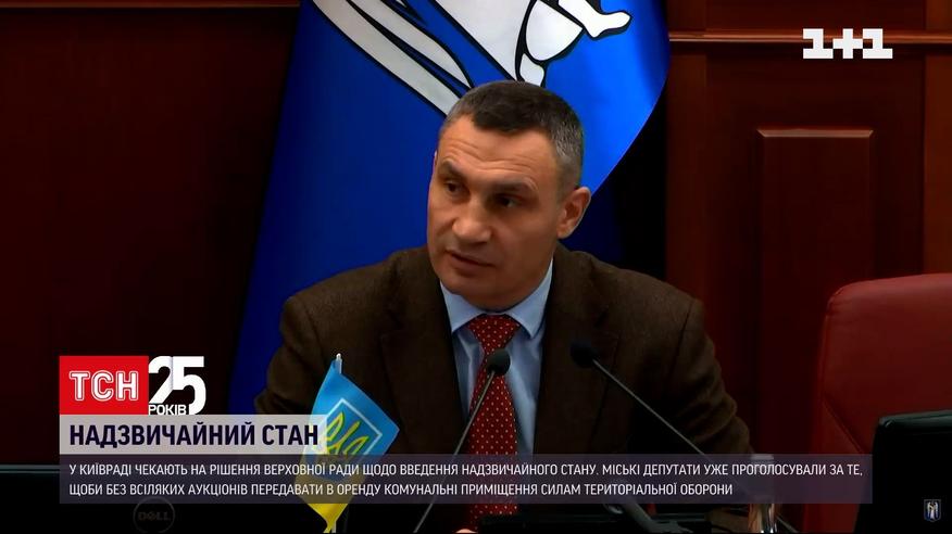 В Киеве ждут решения Верховной Рады о введении чрезвычайного положения. Как только народные депутаты проголосуют - в столице соберется оперативный штаб. Депутаты Киевсовета уже проголосовали за то, чтобы без всяких аукционов передавать в аренду коммунальные помещения силам территориальной обороны. Резервисты терробороны в ближайшее время должны собраться на учебное собрание, которое будет длиться месяц. Об этом сообщил мэр Киева Виталий Кличко и перечислил, какие ограничения ждут киевлян в случае введения парламентом чрезвычайного положения.