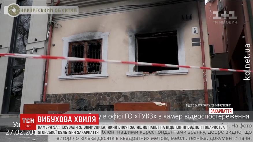 Камерам наблюдения удалось зафиксировать подрыв Общества венгерской культуры Закарпатья