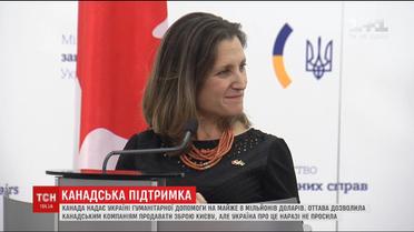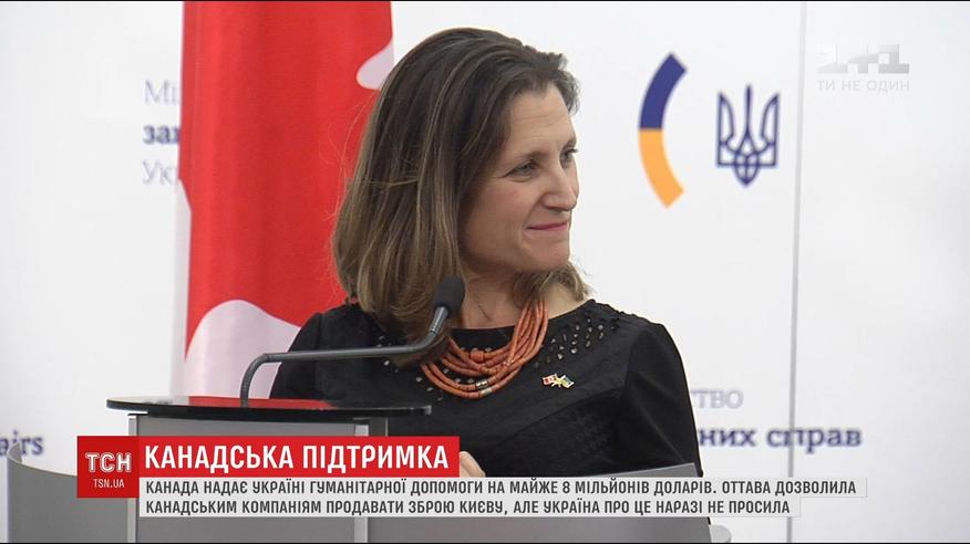 Об этом объявила министр иностранных дел Канады Христя Фриланд во время своего визита в Киев. Мать Христи была украинка и госпожа министр свободно говорит на ее родном языке. Она заверила украинцев в непоколебимой поддержке Канады и напомнила, что неделю назад ее страна внесла Украину в список государств, которым она имеет право продавать летальную оружие. Но такой заявки от Киева пока не поступало.