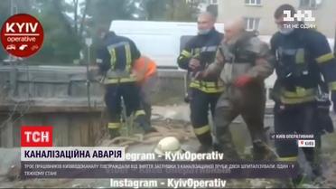 Канализационный гидроудар получили трое работников "Киевводоканала". Когда коммунальщики начали снимать с трубы заглушку, оттуда под большим давлением вырвалась жидкость. Струя разрушила остальные перегородки, сбила людей с ног и протянула их 40 метров трубой до ближайшего коллектора. Оттуда пострадавших доставали чрезвычайники.